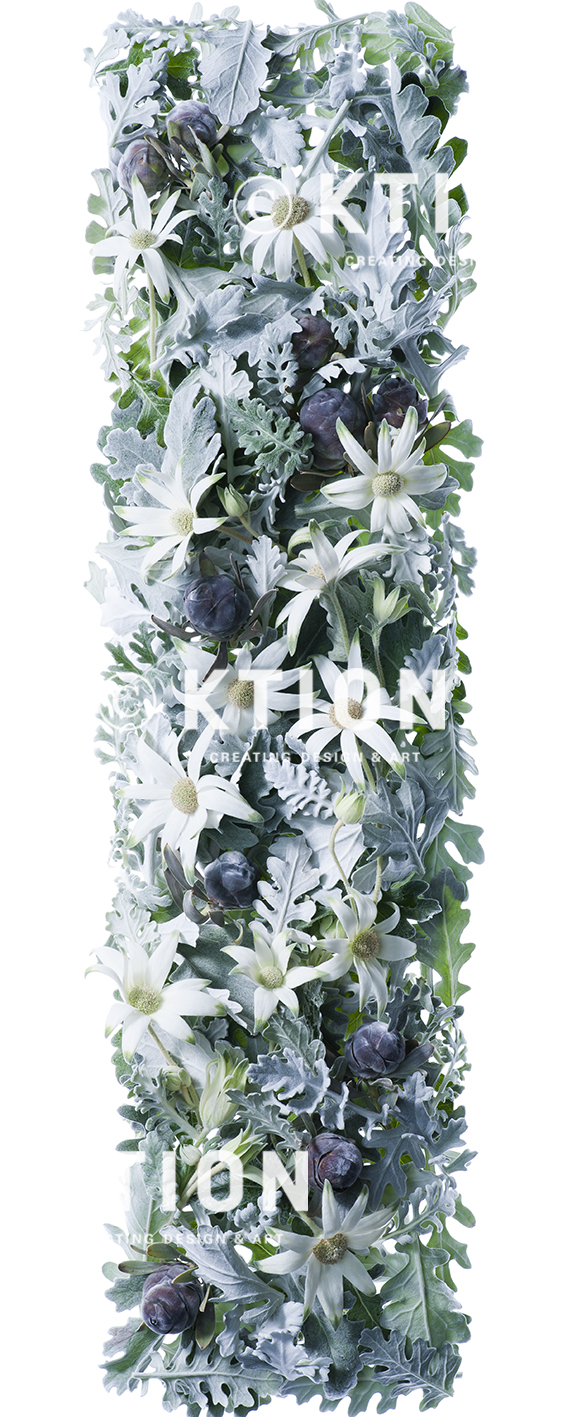 使用花材:フランネルフラワー、シロタエギク、リュウカデンドロン